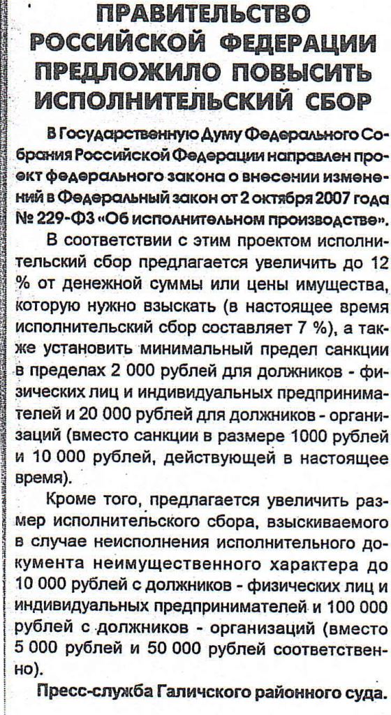 Правительство Российской Федерации предложило повысить исполнительский сборверсия для печати