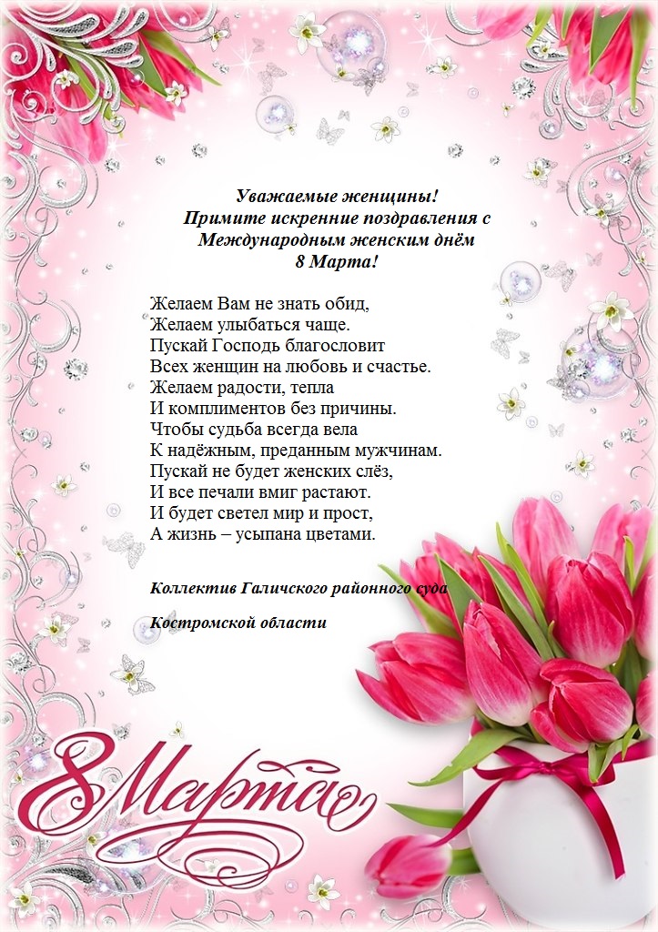 Поздравление с Международным женским днём - 8 марта!версия для печати